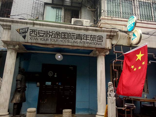 人实在太多,也1点多了,去住的地方,打车在西安不要想,走了1公里多坐了公交。值得一提的是西安的公交,有的车超小,却能装很多很多人,基本1元一位,相比天津的还是很便宜的,就是超级拥挤。在含光门站下车步行到达悦途,这是第二次住青旅