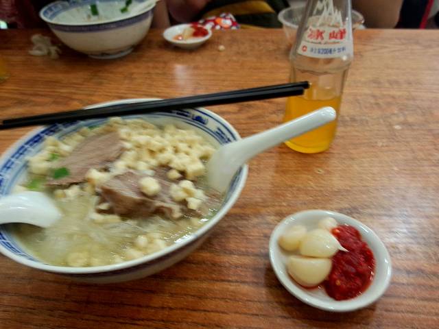 老米家羊肉泡馍,大概排了20分钟,味道还是超赞的,尤其配上糖蒜和辣酱