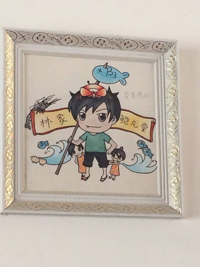 红沙码头的鲍龙堂家的画,上面是老板和他的两个可爱的女儿
