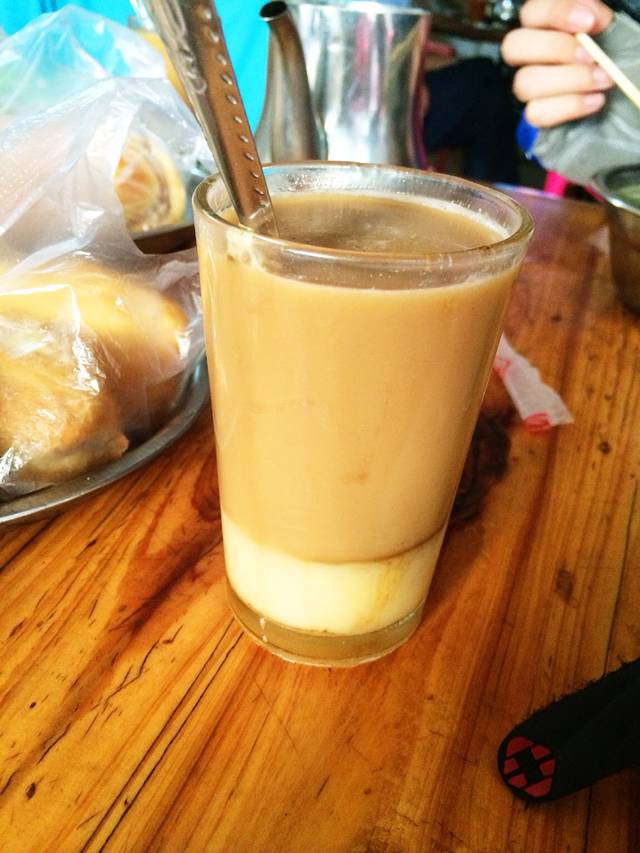 早餐,老爸茶,下面白色的是椰奶,超级甜腻,一般人扛不住