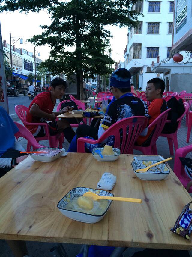 首先就是随处可见的椰子!!!冰过的椰子好吃!!!并且有一次很奇怪,我开了一个冰椰子,里面的椰肉和布丁一样…在龙楼镇我们吃到了超级好吃的糟粕醋,都说是铺前糟粕醋,然后还是无意间看到买的最后一碗,大家分吃的,然后就开始了念念不忘的过程,推荐:糟粕醋,海南粉【加牛肉】,后安粉,小地方的清补凉【龙滚镇?反正有一天中途休息路过一个小镇,一个清补凉的店,老板说他家的都是用新鲜椰汁做的,其他大地方都是用椰粉冲的,然后确实超级好吃】,老爸茶看到就不要放过!!四块一杯无限续杯还可以加冰!!!椰奶鸡,超级香,我都想把骨头啃了,还有在兴隆的印尼餐厅吃的椰汁鸡?里面有香芋和椰肉,汤也很好喝,招牌来着,然后还有后安粽子,也是好心的车店老板介绍的,然后就是红沙码头鲍龙堂的海鲜,超级爽~椰子饭我也爱~海南大学门口的所谓小吃一条街不推荐,广州任何一个学校门口的小吃街就可以完爆那里,还有三亚的第一市场,吃过鲍龙堂的海鲜之后,第一市场就是渣渣…还有椰汁酒~感觉还可以,海南啤酒~噢,还有,在博鳌海的故事,吃到了冬瓜海螺汤,其常见程度类似于西红柿鸡蛋汤和紫菜汤,还有lemon鱼,还有坑爹的椰仔菜………然后还有什么鸡鸭鱼肉羊肉啥的,太荤的我不是很喜欢,所以不作评价,然后还吃过一种手掌大的鱼,海鱼来着,也超级好吃,但是不知道叫什么~有一次吃的海鱼也不错,本地人叫黑香…说起吃的,真是怎么说都说不完