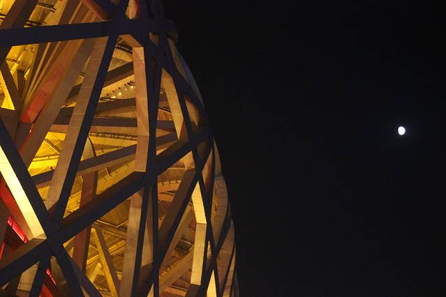 鸟巢和上空的月亮