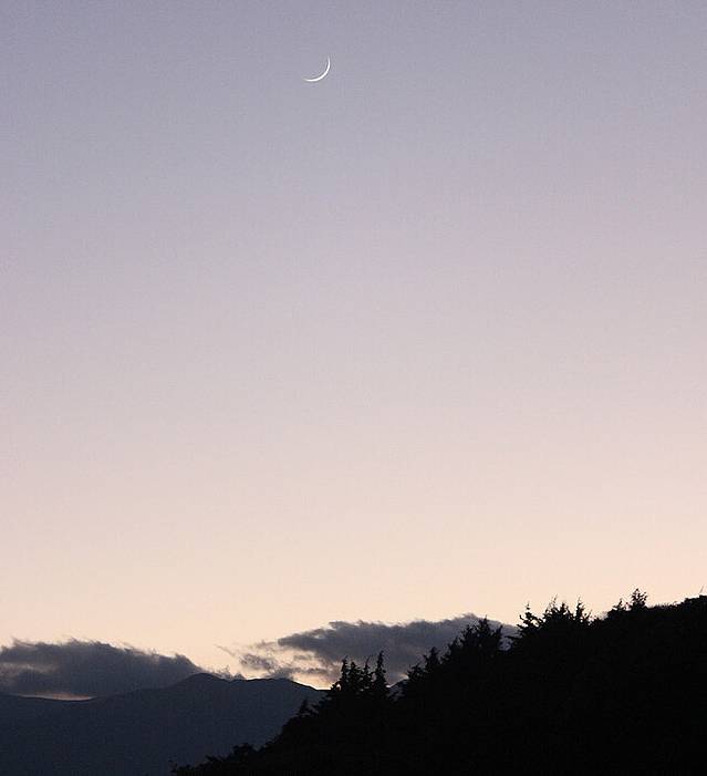 旁晚一轮新月探出了头,时光也就这么流走。