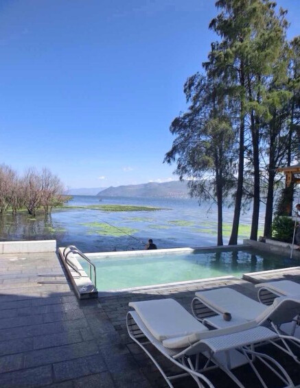 泳池就在洱海旁边,可惜我们没有带泳衣。