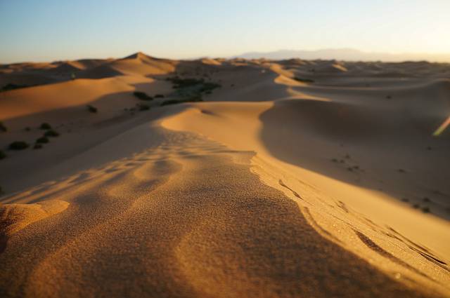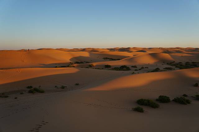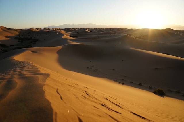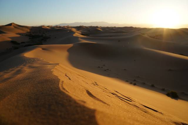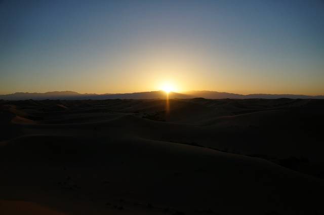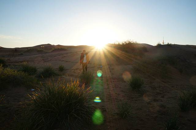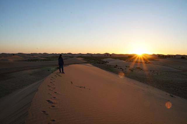 日出日落时分的沙漠显得特别温柔,不像午后那么炽热好像要把人吞噬。
