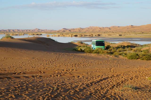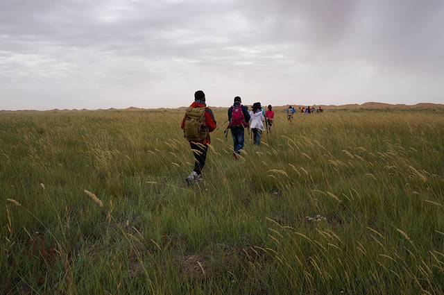 出发后,40只没经验的菜鸟跟着领队踏进沙漠,穿过芦苇地,又走进沙漠,一路上的风景都是以前不曾见过的。戈壁、大漠,这些都只是在电影里看过。默默单曲重复《木兰情》。。。。感脚只有这首歌才能应景,才能表达内心。