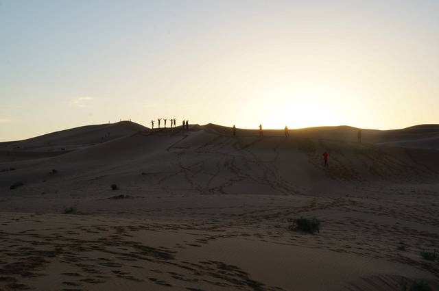 看日出的驴友们。在沙漠,拍逆光剪影真的是再好不过了。