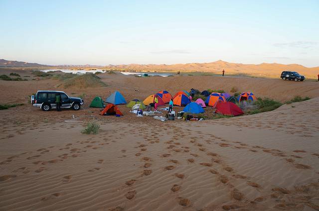 不知道哪个驴友特别机智的把帐篷搭在了沙丘上。不过晚上风应该很大很冷吧?