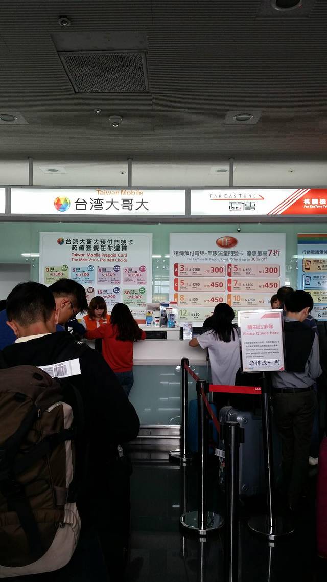 台湾大哥大和中华电信是入台后游客常用的卡号,我因为是定制机,只好买了300TND的通话卡,后来去市区加了180才开了上网功能