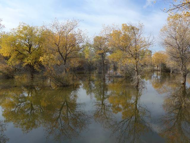 一大早其离开武威,450公里沿着G30奔酒泉。酒泉到金塔县45公里,去金塔胡杨林在路边有路牌,胡杨大道再走5公里。到了胡杨林才感觉两天的辛苦是值得的。。。特别是暴风雨过后,天空湛蓝,胡杨林丰富多彩,湖水倒影,煞是惊艳。。。