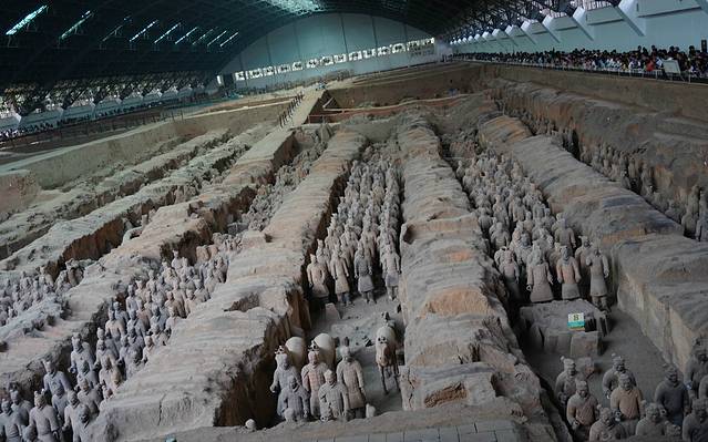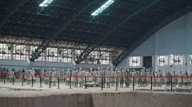 兵马俑1号坑,坑中的人物千姿百态,每个人的穿衣不同带表的职位不同,在这请个导游比较好,这样可以了解更深。