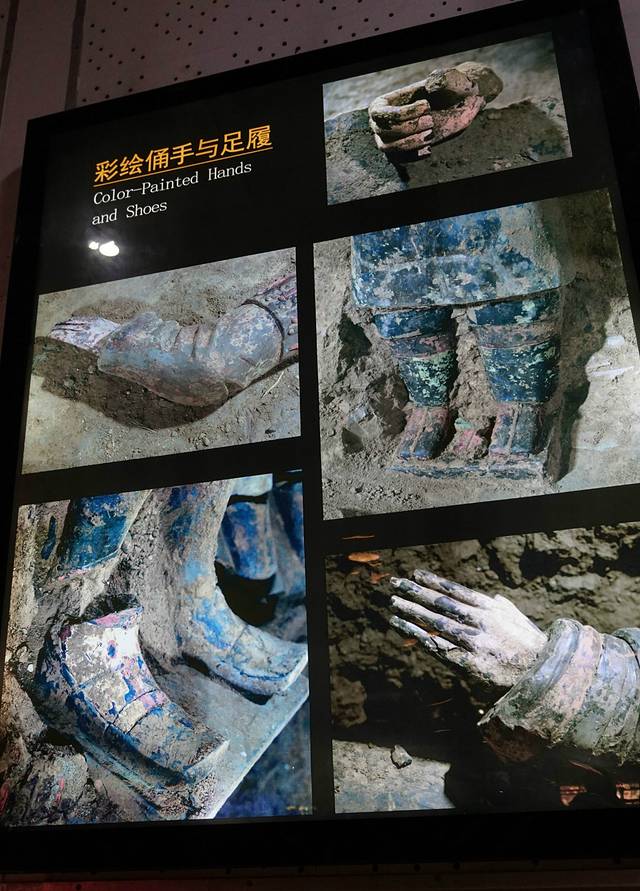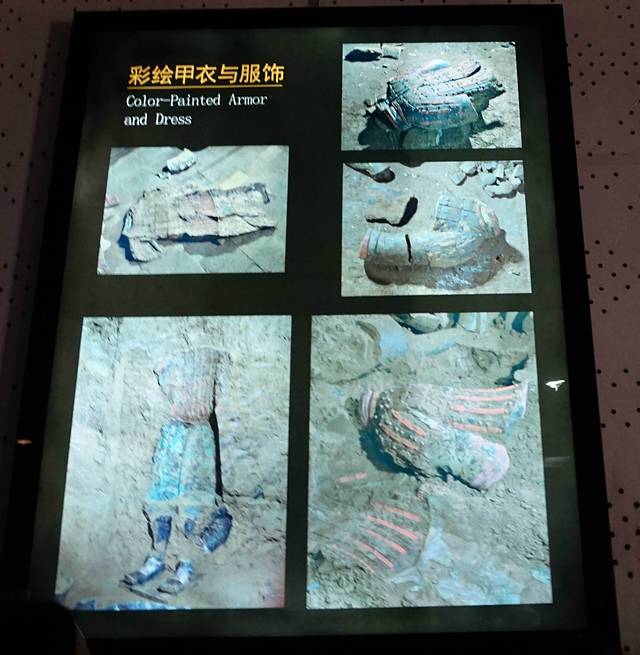 刚出土的兵马俑是这样的,因为现在还没有技术可以保存,所以我们看到的都是没有颜色的。