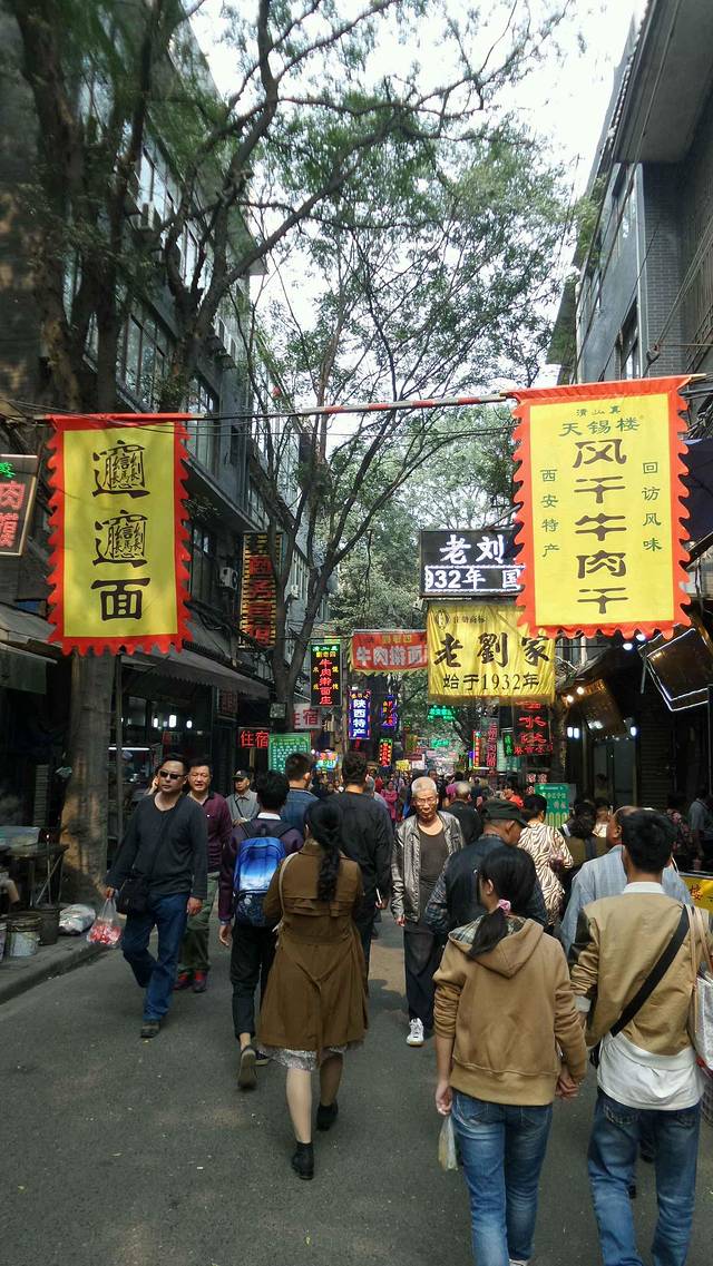 放下行李洗刷一下 拉着我妈妈就出门了 第一站回民街 虽然我妈说各种我都吃过了 你还要吃么 我说来了一趟能不吃吗 何况是我最心爱的羊肉泡馍 nice 一口糖蒜一口羊肉泡馍还能不惬意吗 还有一些小吃 我不是很喜欢 但是吃过以后觉得OK还是不错的