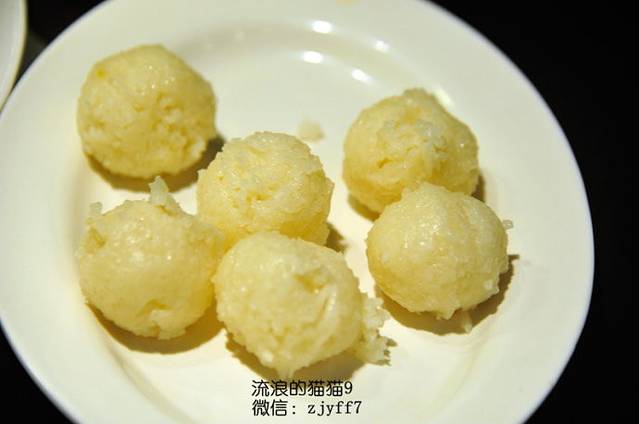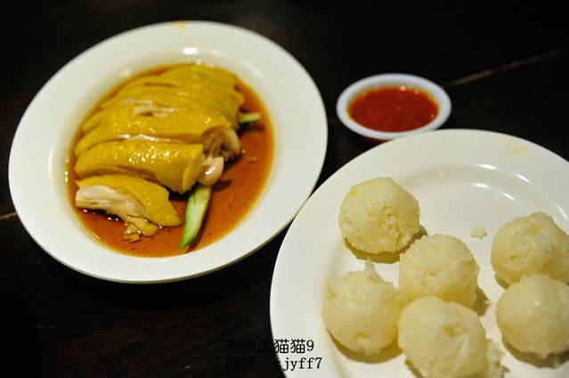香滑饭粒揉成结实的饭球,貌似有椰丝的口感,配以幼滑白斩鸡,蘸水是特制的蒜头辣椒酱,回味无穷啊!