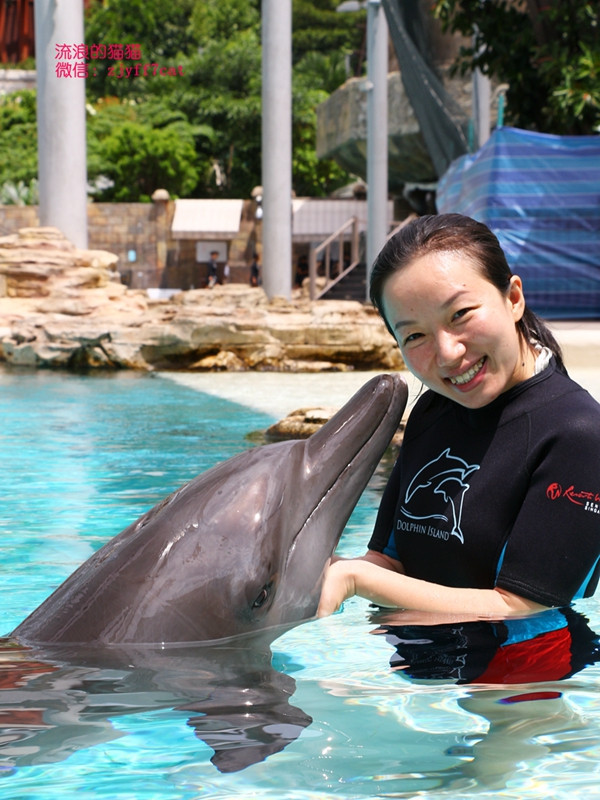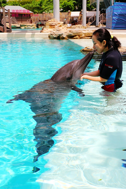 圣淘沙名胜世界的海洋生物园是世界最大的水族世界,里面有超过100000条海洋生物,而最让我迷恋的,是在这里可以与海洋生物亲密接触,例如海底行走与海洋鱼类一起呼吸,潜水观看鲨鱼进食,亲手喂食魔鬼鱼与它们肌肤相亲,而最嗨森的,是和海豚的亲密接触,在这里,我毫不吝啬的送出了与海豚的初吻。