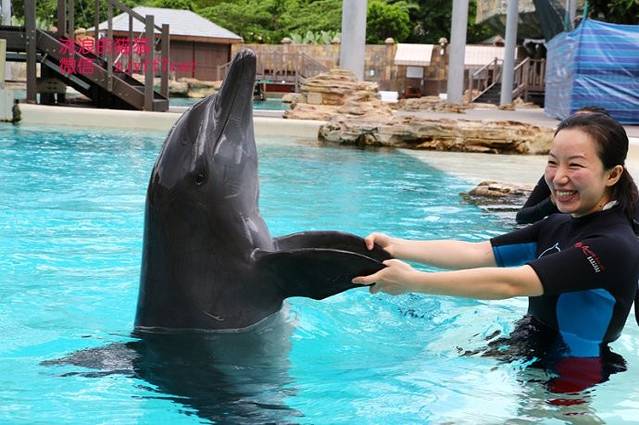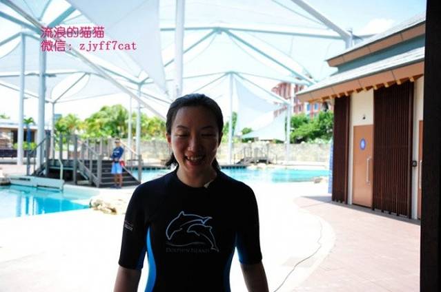 换上特制的潜水服,园区内的中文培训师给我们讲解了海豚的各种习性,以及如何与海豚接触,如何保护它们不受到伤害。。。。