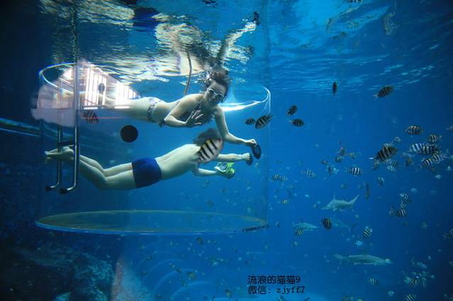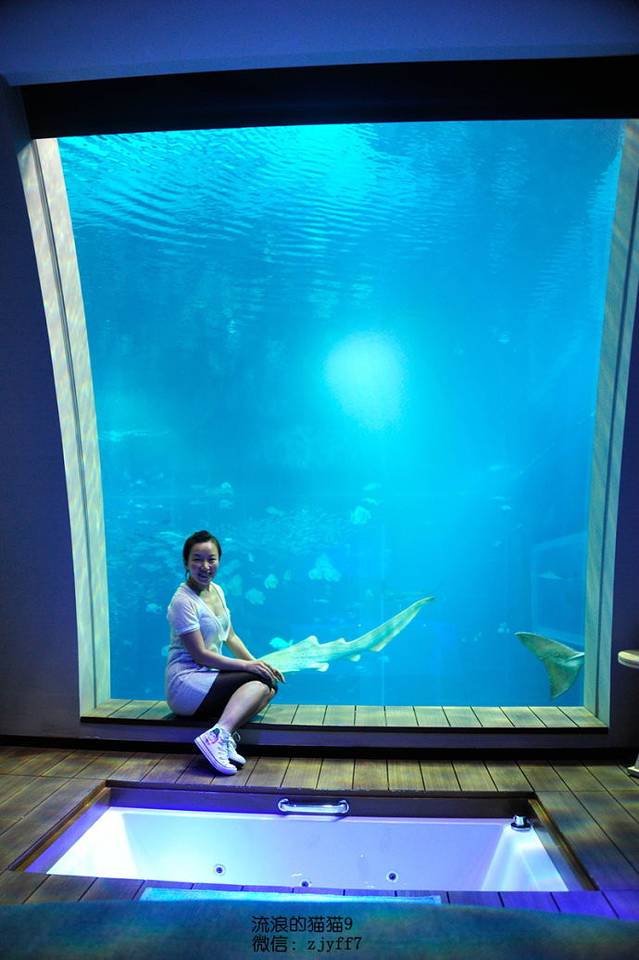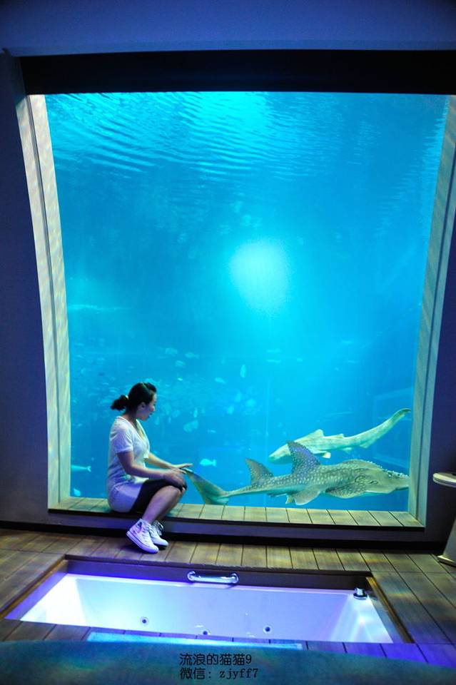 想象一下,置身于玻璃前的浴缸里,看眼前海底世界各种鱼类游弋,多美啊!