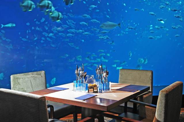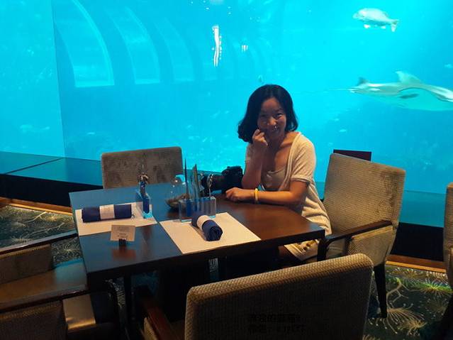 美丽的海底世界,和漂亮的西餐,真可谓秀色可餐,以至于每个到这个餐厅的人,都忙着观赏,甚至顾不上品尝美食的味道了。