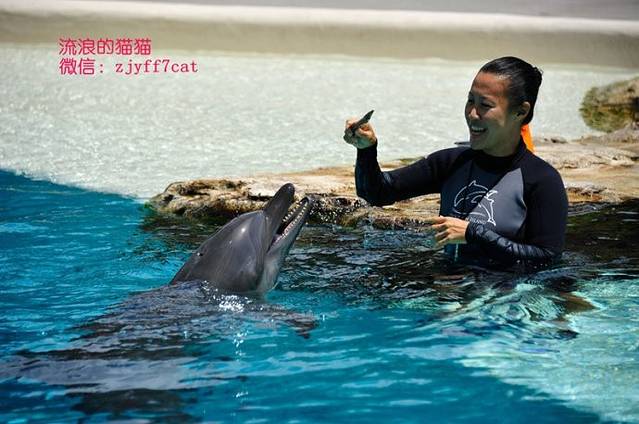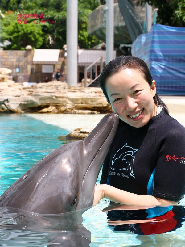 在和海豚的亲密接触中,名胜世界的培训师还细心的为我们讲解了许多关于海豚的身体构造,栖息环境,饮食习惯等等知识,以及如何保护它们,尊重它们,如何与它们和平相处等等许多知识,比在书本上看到的生动多了,而且一边嬉戏,一边学习,印象特别的深刻。