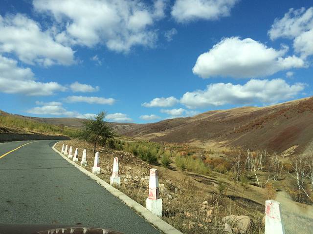 第二天一早在酒店用过早餐,就开车出发前往达里诺尔湖,驱车沿着303国道,边听歌边欣赏美景,2号内蒙的天气真是太好了,蓝天白云,彻底告别了昨天的阴雨蒙蒙,但室外温度确实很低,到达达里诺尔湖时,由于天气太冷,在景区逗留的时间仅仅40分钟,门票90元,觉得有点坑爹。。。觉得沿途的风景真是美过景区呢。