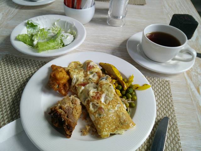 第一天的早餐算是赚到的,凌晨5点多到酒店,居然就让入住了。痛苦的9个半小时红眼航班后,居然不用忍受国际酒店公约熬到下午2点入住已经足够惊喜,居然还肯让享受早餐,太有爱了有木有