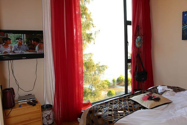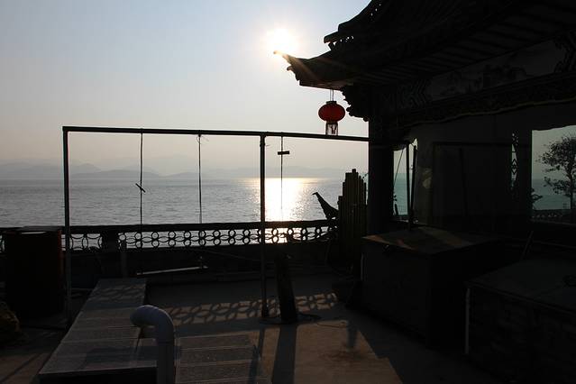 下了车,顺着标示,很容易就找到我订的客栈,我订的房间不大,但是很精致,大大的落地窗,站在窗前就可以看见洱海,很美。放好行李,下楼问了客栈老板娘,觉得去古城很赶,于是就在码头附近转了转,吃过晚饭回来上了客栈的四楼,有个秋千,坐在秋千上,面朝洱海,洱海的风有些冷,但是让人平静,突然就觉得为什么不能放下呢?