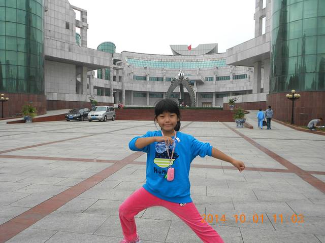 第二天:10月1日上午八点多到南昌,在南昌火车站坐内环2路去腾王阁,结果看到腾王阁门口好多人在排队买票就走到附近的江西博物馆,两个地方离得很近,而且博物馆不用门票不用身份证,关键是里面人很少,但是感觉做得不错,孩子很喜欢,尤其是里面的仿真动物做得很逼真。腾王阁门口的仿古街只有很少的几份卖东西的,跟本没有商业街的感觉。孩子要吃路边的桂花板栗饼3元/两,怕和新疆的切糕一样所以只让切了宽两厘米左右一块,称完40块钱也够黑的,味道很一般上当了。逛完博物馆用手机导航找到附近的公交站牌坐公交回火车站,坐下午四点半的火车赶去景德镇。晚上住在提前定好的格林豪泰曙光路古玩市场店,走着要十多分钟。