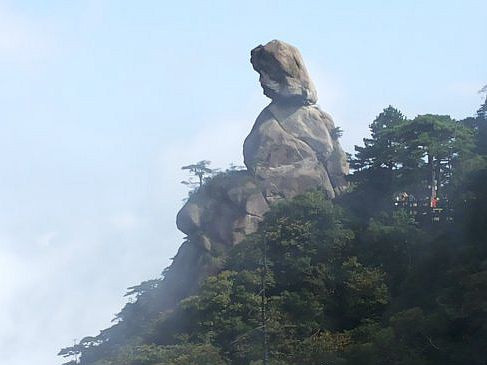 东面,是我这次双人休闲游的起点,近年修建的金沙索道,现在主要是旅游团上山的路线,因为前往东面的交通比较方便,但是东面山路封闭,不能爬山,必须索道上山。但是,还有但是,东部门口有农民开私家车和摩托车的送你去玉灵观,价格大概在15-20元人。玉灵观这里没有售票点,没有门卫,你可以昂首阔步走进去。缺点,有6公里山路,沿途没有水溪,比较荒凉。优点:可以逃票。且索道上山可以迅速见到三清山最具标志的两处景点,巨蟒出山和思春女神!