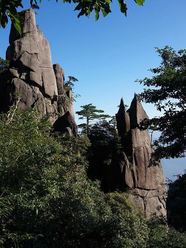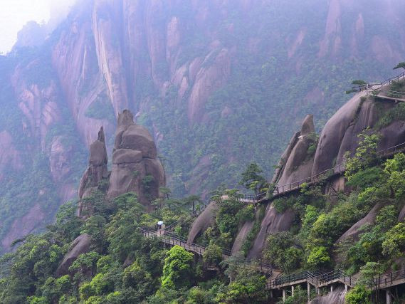 南面,是我学生时代徒步背包的路线,传统爬山路线,因为南面最早修建了缆车,开发的比较早,南面比较热闹。而且南面登山的路程最短,只有2.5公里山路。但这条线路我现在非常不推荐,理由:一,从玉山县到三清山这段路,只能用乡间小道来形容,坑坑洼洼,下雨后泥泞不堪,无论是你坐中巴还是自驾,到了山下都很累;二,不能逃票,老实交钱。