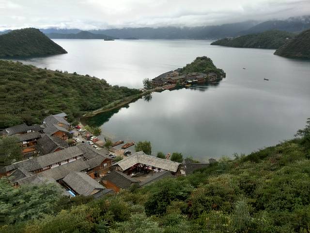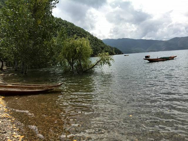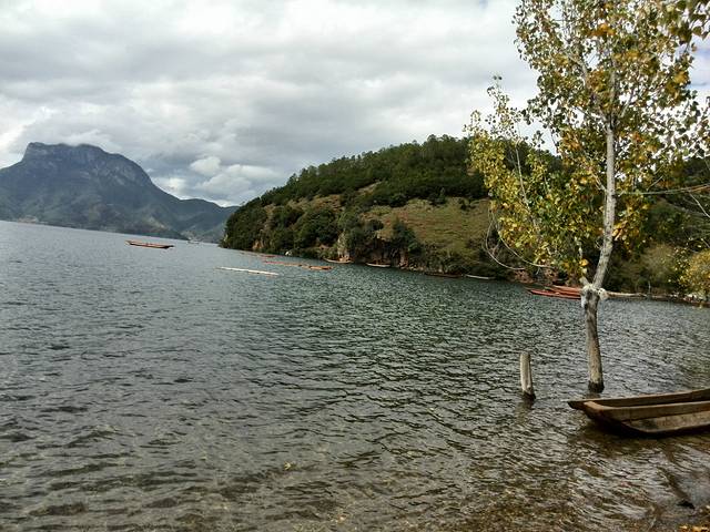 回客栈放了一点东西,想到还有点时间,就租了一辆自行车,骑着去走婚桥,想说这两天都下小雨,今天会不会有点晴,泸沽湖经常是东边太阳西边雨的,结果还是没有看到日落!