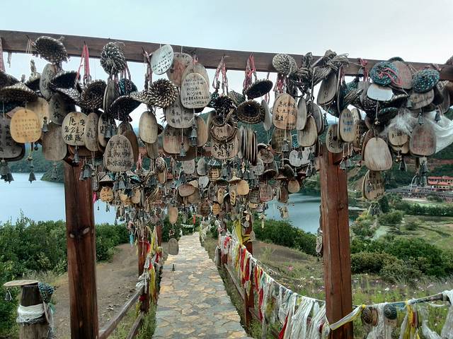 我乘坐观光大巴的游览顺序是,泸沽湖镇-情人滩(凉山州那边和丽江那边分别有一个,沙滩上面分别有几棵情人树)-里格半岛观景台-里务比岛(在这里划船,50一个人,岛上有一个寺庙)-走婚桥(当天刚好遇到四川台的两天一夜在这里拍摄,看到安七炫的保姆车诶)-草海-摩梭博物馆。 我在走婚桥就下车了,想边走走边看看风景!