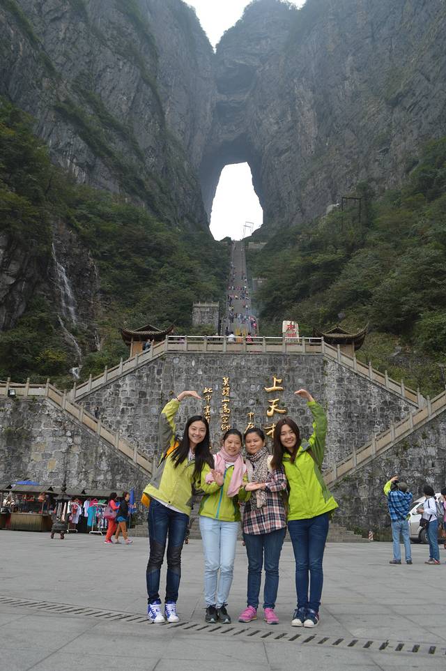 第三天就是去天门山,天门山在市区。可以到武陵源区的汽车站的汽车10元一个人到天门山,但是我们四个人实在是懒,跟司机师傅讲价到了80元,带我们去了天门山。