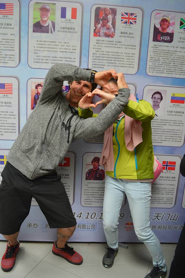 我们很幸运,10月15日就是红牛杯的翼装飞行的竞赛,所以14日那天会有运动员在天门山的试飞,来自各个国家,有几个真的好帅。