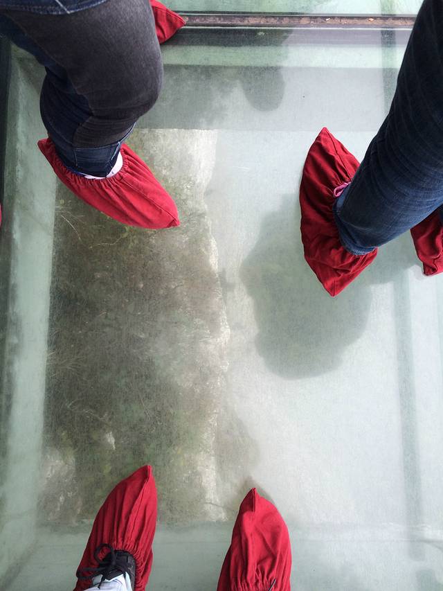玻璃栈道已经在微信都出名了。其实一点都不可怕。玻璃都被走的有点模糊了。不过还是可以体会到天门山的高度。5块钱一个人的鞋套就可以上去走了。我们在上面摆了各种pose,连一开始最怕高的小伙伴 都玩的不亦乐乎。