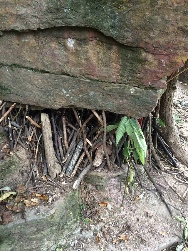 整个张家界都能看到这样的角落,有的也不止是角落。地导告诉我们这个叫“撑腰”,用树枝撑在这个地方,表示你有大山撑腰,寓意身体健康,长命百岁。谁要是把别人的拿掉,那个人就会生病。