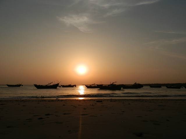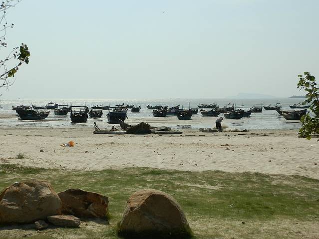 有许多鱼船,不出海作业时都停靠在海岸上,这样又成了一道美丽的风景线。