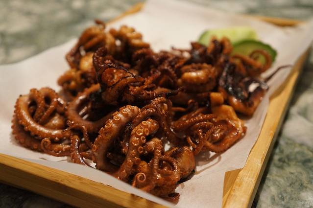 逛完渔人码头坐公交回宾馆换了身衣服就径直去了天津街,为啥换了身衣服?因为那里有我们魂牵梦绕的大连铁板鱿鱼!路边摊位的铁板小哥煎的利落,再配上辣酱那绝对是胆固醇超标的美味啊,吃了烤鱿鱼又去旁边的杨国福吃了碗麻辣烫,好像又吃多了……