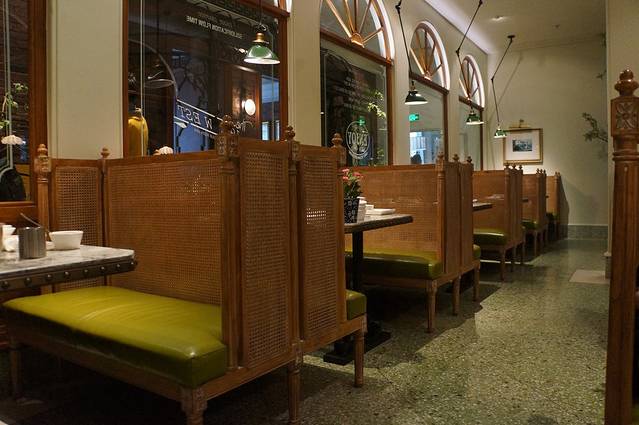 到了渔人码头还不到16:00,我们决定趁着不到饭点先去觅食,事实证明这又是个英明的决定。进了餐厅名曰品海楼,听着就也挺高大上,装修风格复古,一辆老式的火车车厢放在大堂中央,不同的就餐区被分别隔开,整体为洋式怀旧风格。点餐直接打开大众点评,整体中规中矩,无功无过。