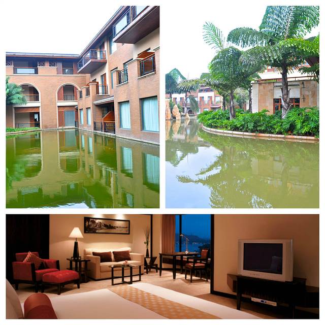 入住酒店后,原先在预订时对于800元的房价还觉得有点小贵的心理,很快得到了释然。酒店坐落在优美的湖泉自然生态园中,酒店没有挂牌,但从外部环境和内部装修都显得很高档豪华,估计不低于五星级的标准。客房和卫生间的面积很大,据服务员介绍,那个超大的浴缸引入的是纯天然的温泉,送双早和足底按摩,凭酒店浴袍免费享受温泉,唯一让我觉得不爽的就是酒店没有WIFI。