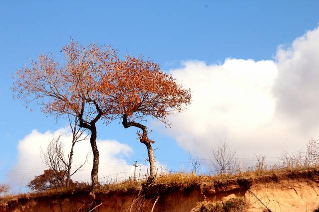 蓝天、白云、阳光、美景、美丽秋色在热情的欢迎着我们