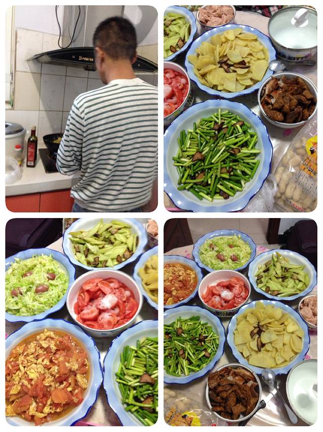 自已动手,丰衣足食,“大厨”在忙活给老婆孩子做饭(大拇指赞一个),哈哈,诱人不~~~(住的地方周围就有市场,食材都是在市场买滴)