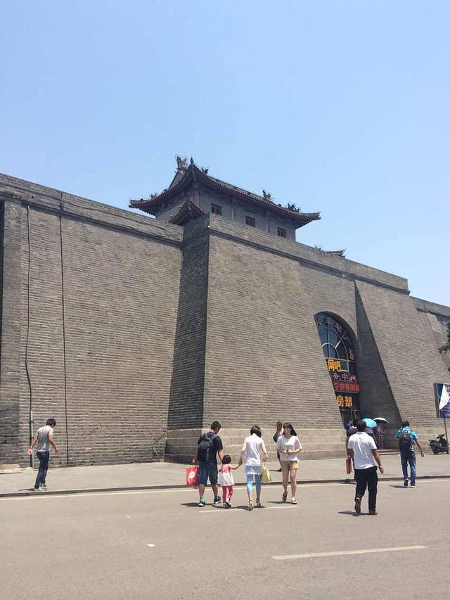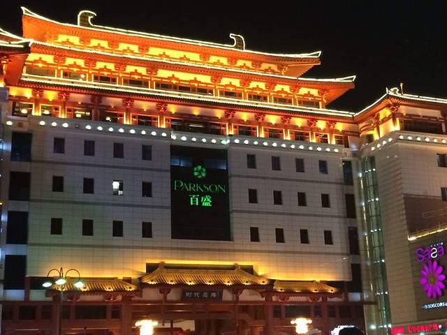 城墙、到处都是城墙,整个城市都有城墙!伟大的杰作!白天办完事,我们又去回民街,吃了高姐姐一直介绍的胡辣汤。。。照片不忍直视,不放了,味道不是我习惯的;白家肉夹馍真的没有那么好吃啊,卤肉是牛肉;烤串,好吧,能吃!吃完了没拍照~嘿嘿!然后我们折回宾馆,步行15分钟到了小雁塔,呃。。。关门了,看到这个小神兽没?琨哥说比我瘦。。。。。。能掐死琨哥么?这张照片已经很显人瘦了~!晚上游荡在钟楼附近,遇见了这个大气的百盛!!!这个不是全景,我的手机照不下全景,晚上可以用金碧辉煌来形容了!灯光的效果加上磅礴的建筑,电费很贵吧?