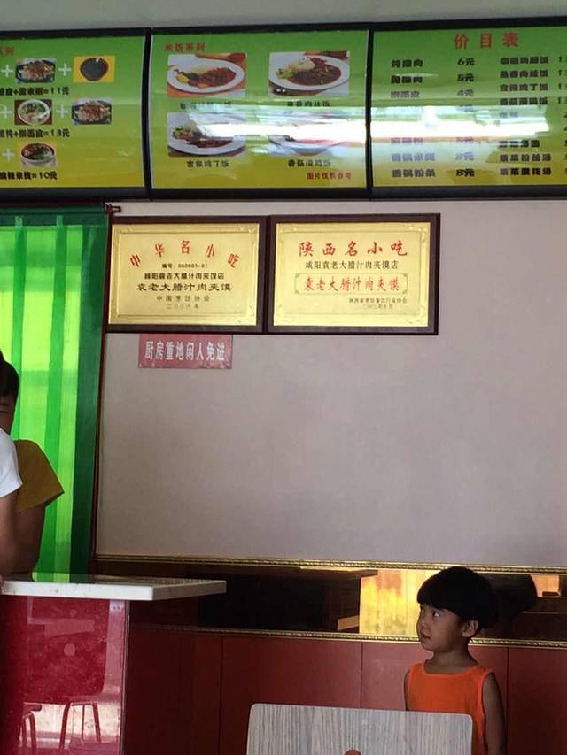 袁老大肉夹馍,中华名小吃、陕西名小吃,赞一个~关键是便宜,一桌子,才24块钱!