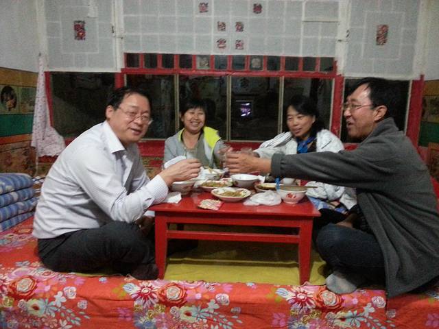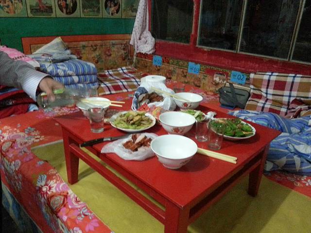 雨很大,问了说是古堡里小饭店也没有什么可吃的,让主人给炒了三个青菜,焖了一锅饭,收了我们60元,我们带的鸭子、里脊肉、花生米、黃瓜,也很丰盛的晚餐了。初秋雨夜,寒意来袭,农家大炕上,小酒一端,疲劳尽除。
