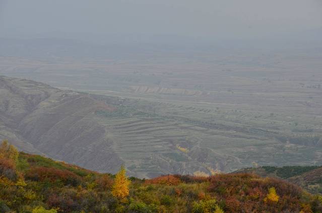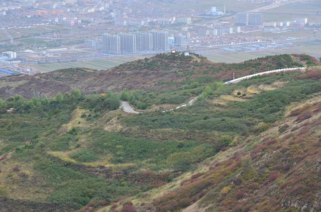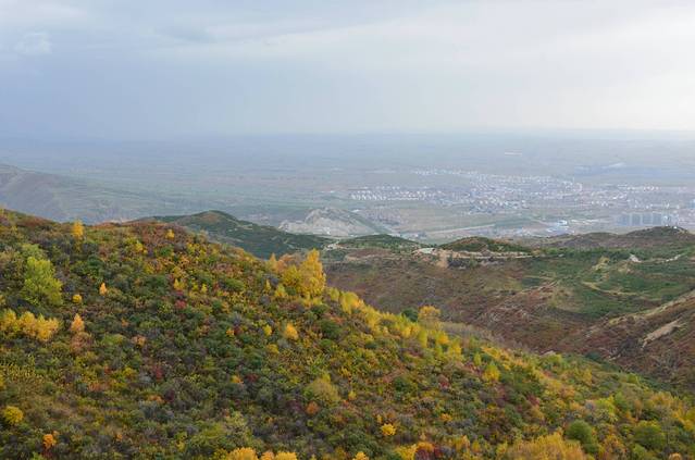 朔州绕城高速-朔州南下,这里是一个高岗,能看到整个朔州城,而且风景很美,秋色正浓。
