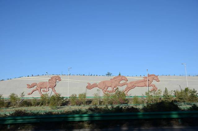 十月五日,早起从鄂尔多斯东胜竟然没找到喝奶茶的地,只好边开边找,出了市区也没找到,上65包茂高速,从万利镇出来,吃上早点,重上G65,九点十分,60公里到达响沙立交-响沙湾风景区。