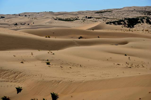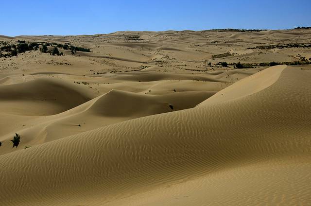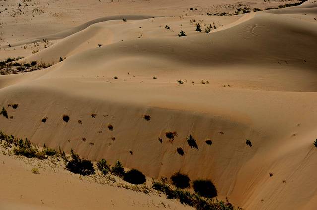 那一条条沙脊线,在阳光下那么清晰漂亮,如果在朝阳或夕阳下,那会更漂亮的。
