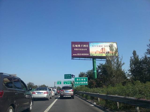 方便完毕,上路行驶,前方是长长的车龙,断断续续地跑快跑慢,前方大屏幕上提示张家口方向有事故,到下花园车完全不动了,再次果断地从下花园拐出京藏高速,奔涿鹿,本来想上G7京新高速的,但一瞥眼就能看到G7京新高速上排满了车,而且一动不动,所以上S342省道-G109国道,虽说跑得不快,但总比堵在高速上强多了。