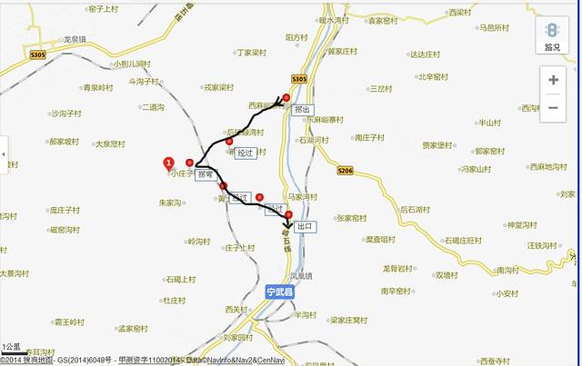 出阳方口上S305,刚走一、二公里,前面就是车的长龙了,不能再往前闯了,调头回来,想绕行五寨去宁武的东寨,看到一条岔出去的小路,毅然地大胆开了上去,坑坑洼洼,起起覆覆,上上下下,左转右拐,回来查搜狗地图也没有找到这条路,只知道是经过宁武县凤凰镇小庄只村。虽说路不好走,风景到是不错,那应该是神朔铁路,柳暗花明又一村,出得小山路,就看到了宁武县城,难得能走进这大山中,开车走这样的小山路,又没有绕远,不是挺好的吗?