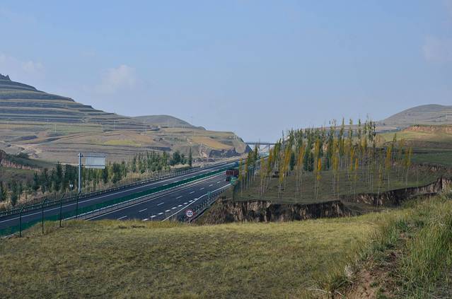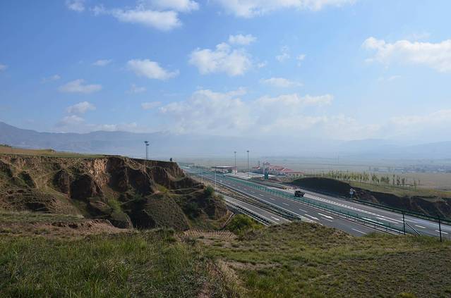 凉城再上兴巴高速,车也非常少,唯一感觉不好的是,这条兴巴高速为什么会是水泥路面呢?明显感觉到有颠簸,可没有柏油路面开起来舒服,可能因为这条路是运煤大通道的缘故吧,水泥路面能承受重载的运煤大车,外侧的二条车道明显已经被压出了车辙了。